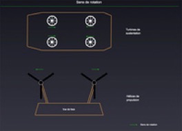 - Pour les hélices de propulsion, de nouveau une de chaque type, direct et contra-rotatif. Lors d’un virage la coque aura