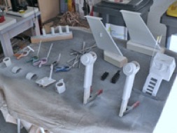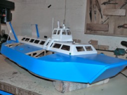 - Réalisation de tous les petits accessoires : Cheminées, accès trous d’homme, bittes d’amarrage, chaumards,  feux, radar (fonctionnel), pose des vitres du poste de pilotage, antennes, etc…  Et comme d’habitude pour ce genre de trucs, c’est assez long à faire.