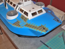 - La coque est peinte. Opération à faire avant la pose définitive des jupes pour éviter un masquage pas simple...